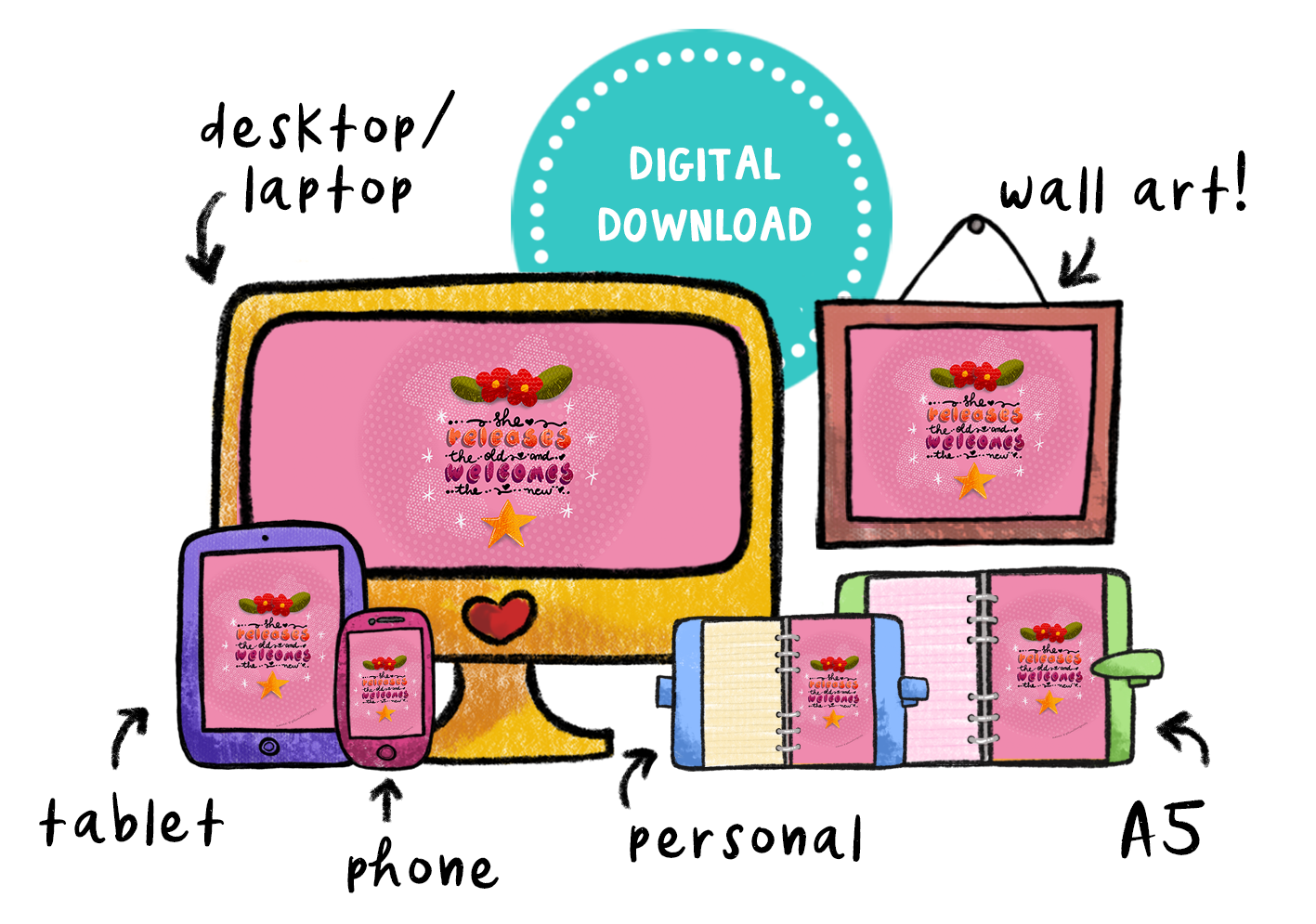 ?⭐️ “She releases the old and welcomes the new” Downloadable Packet!