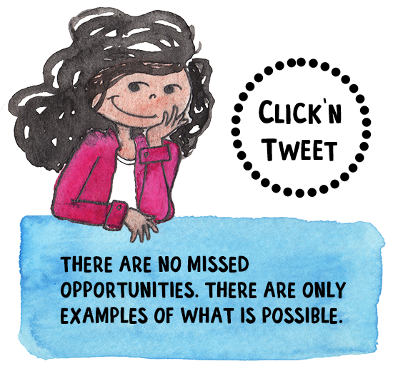 There are NO missed opportunities. There are only examples of what is possible.